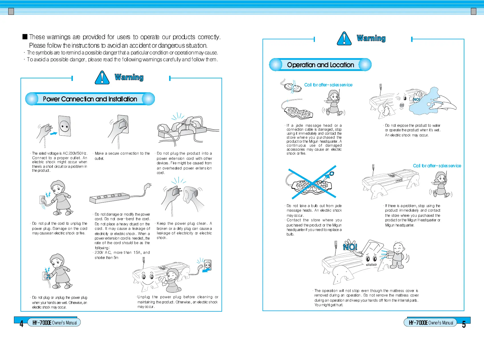 Migun HY-7000E - General Warnings and Precautions; Safe Power Connection and Installation; Safe Operation and Product Placement