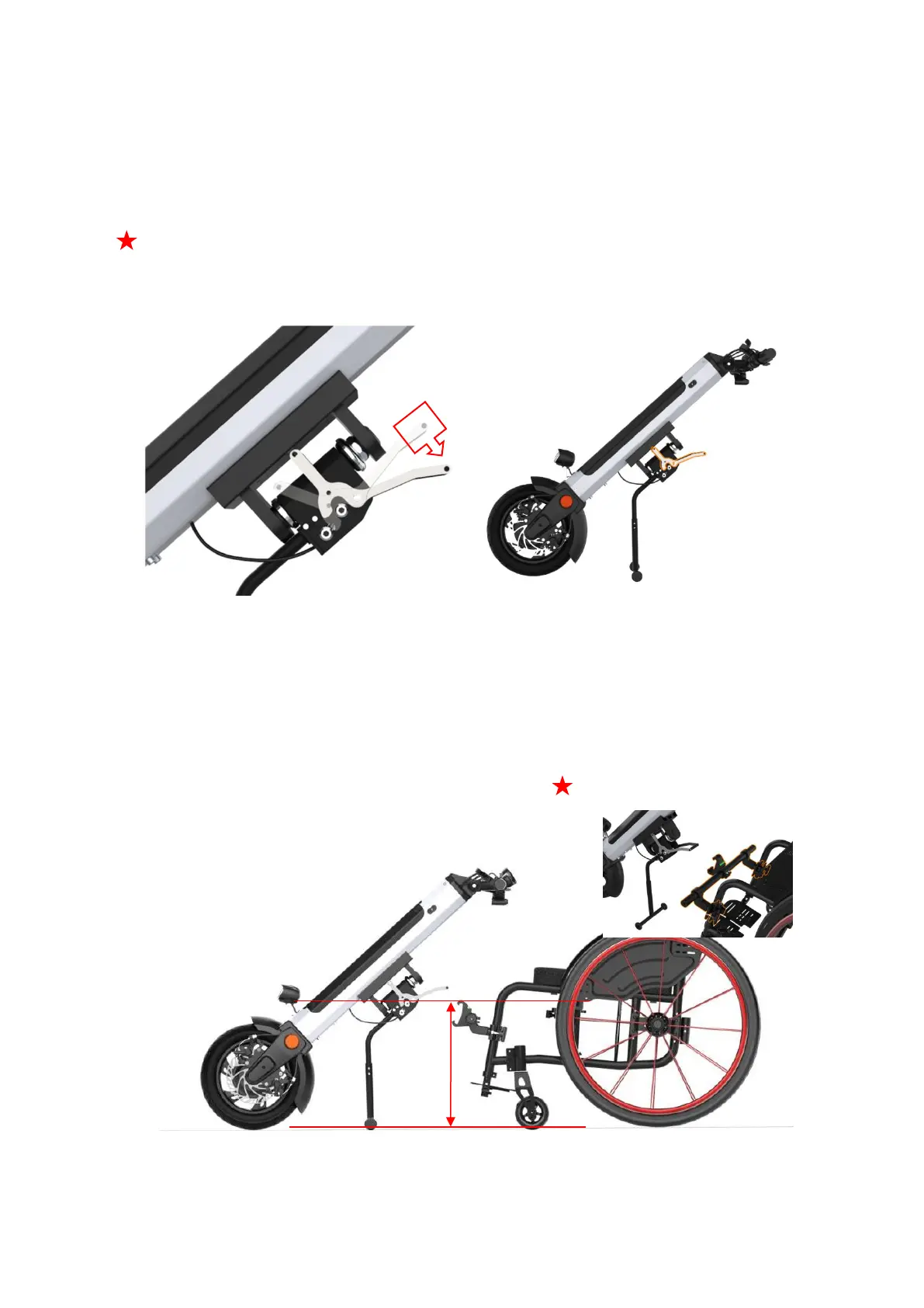 2. As shown in figure,Clamp the pipe clamp to a suitable frame of the wheelchair