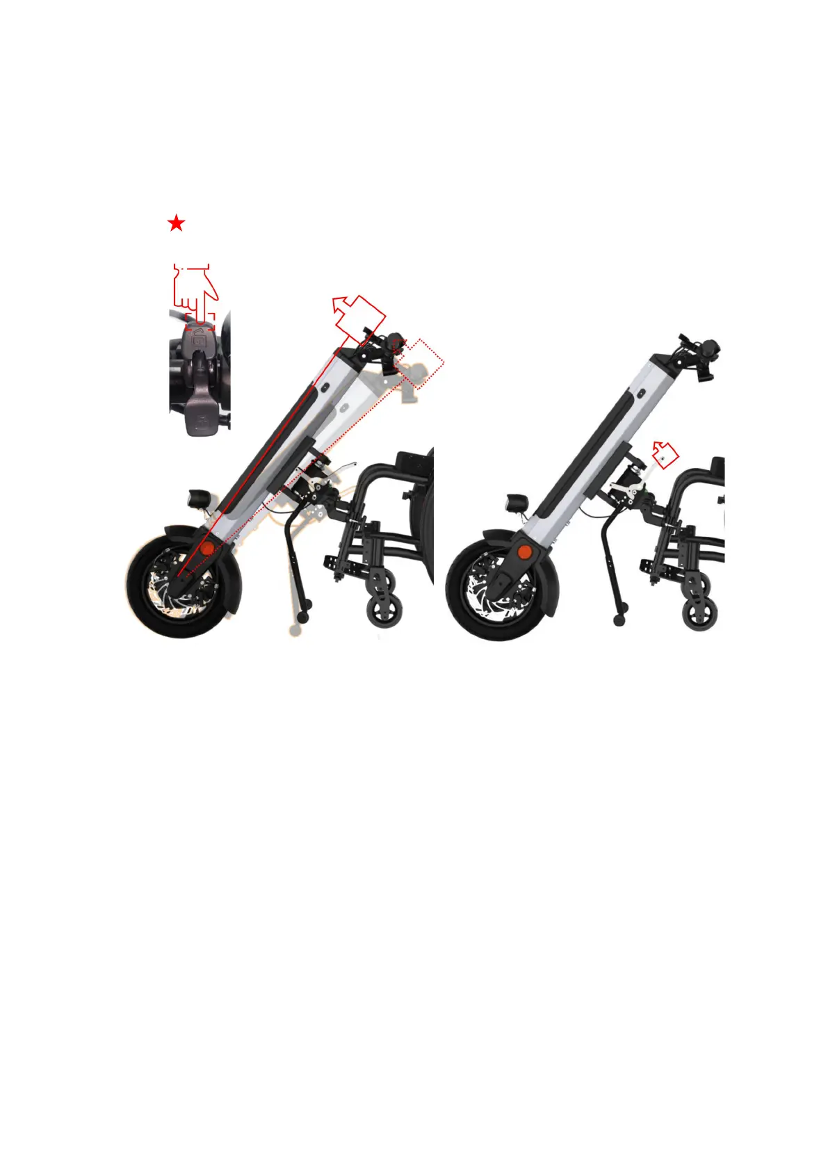 4.Push the handlebar forward and upwards, when you hear a "click", the handbike is adjusted in