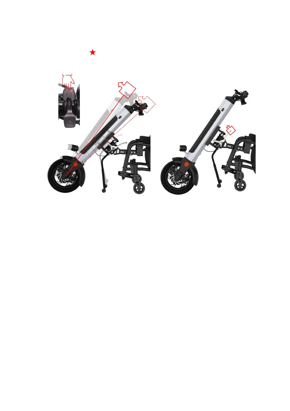 4. Push the handlebar forward and upwards, when you hear a "click", the handbike is