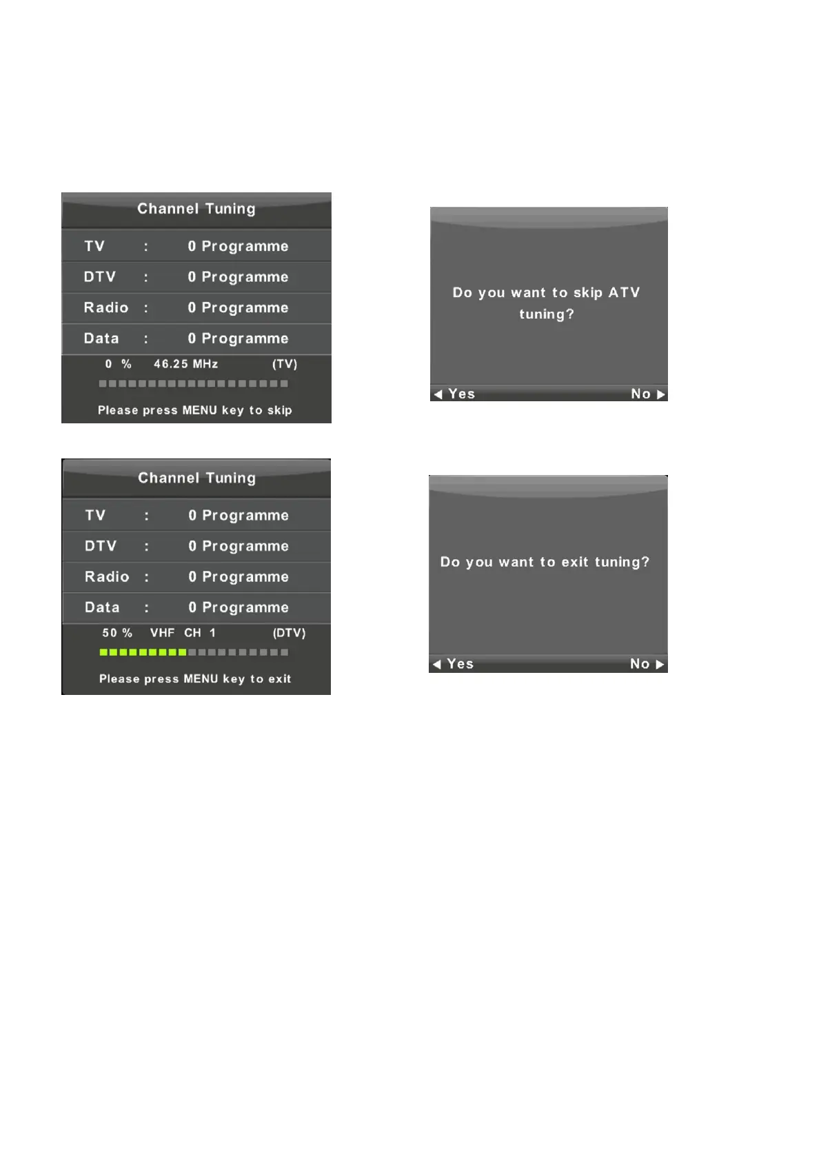 Second tuning DTV, press Menu and left arrow button to skip DTV tuning.