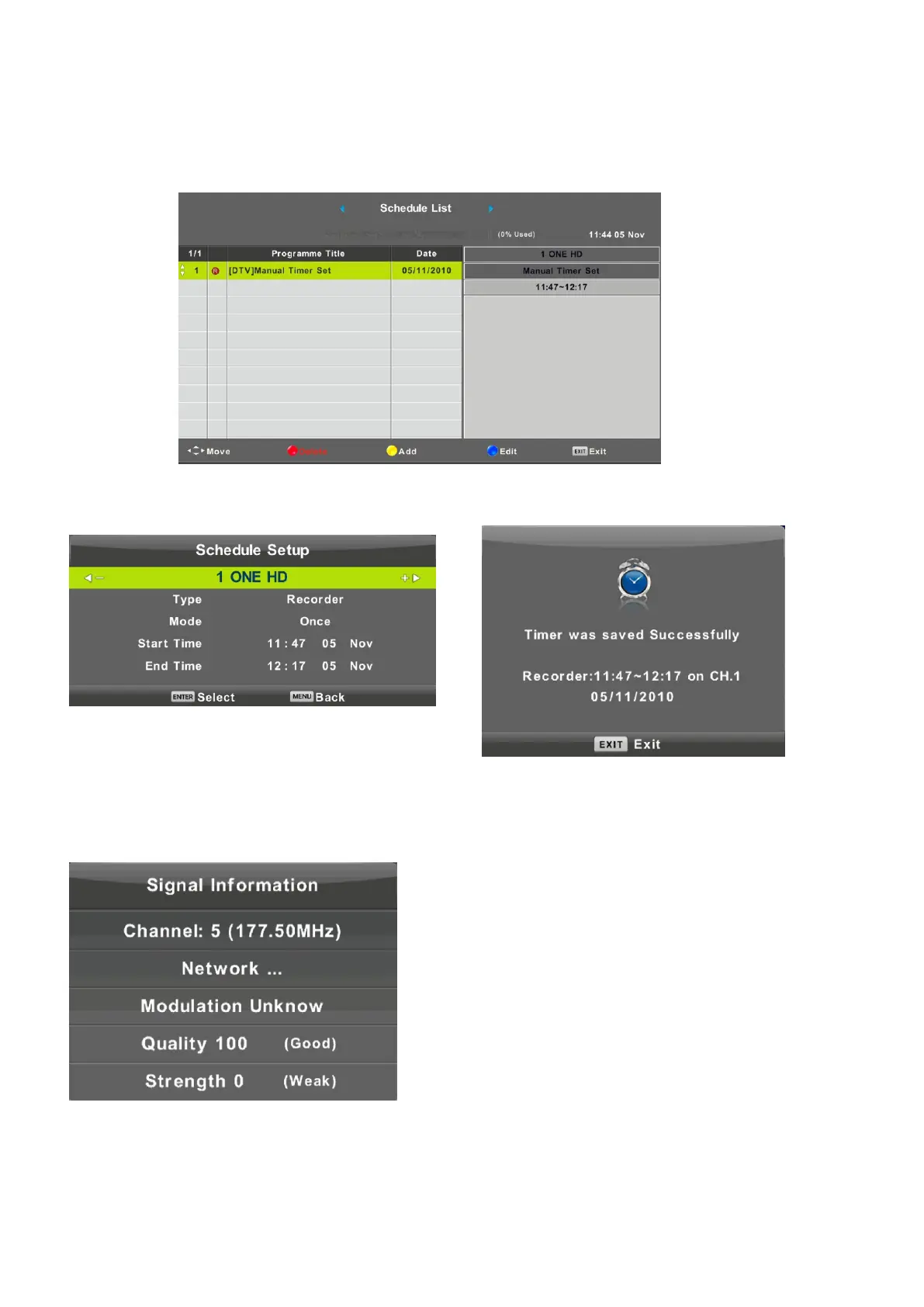 Press ▼ / ▲ button to select Schedule List, then press Enter button to enter sub-menu.