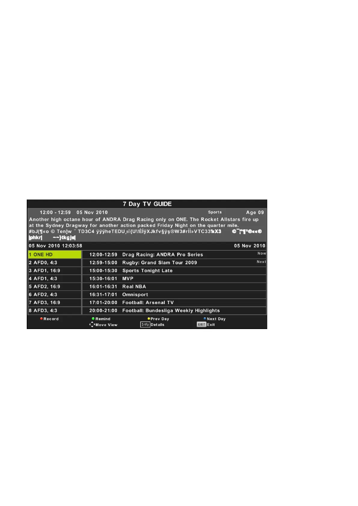 Press button to display program guide of previous day.YELLOW