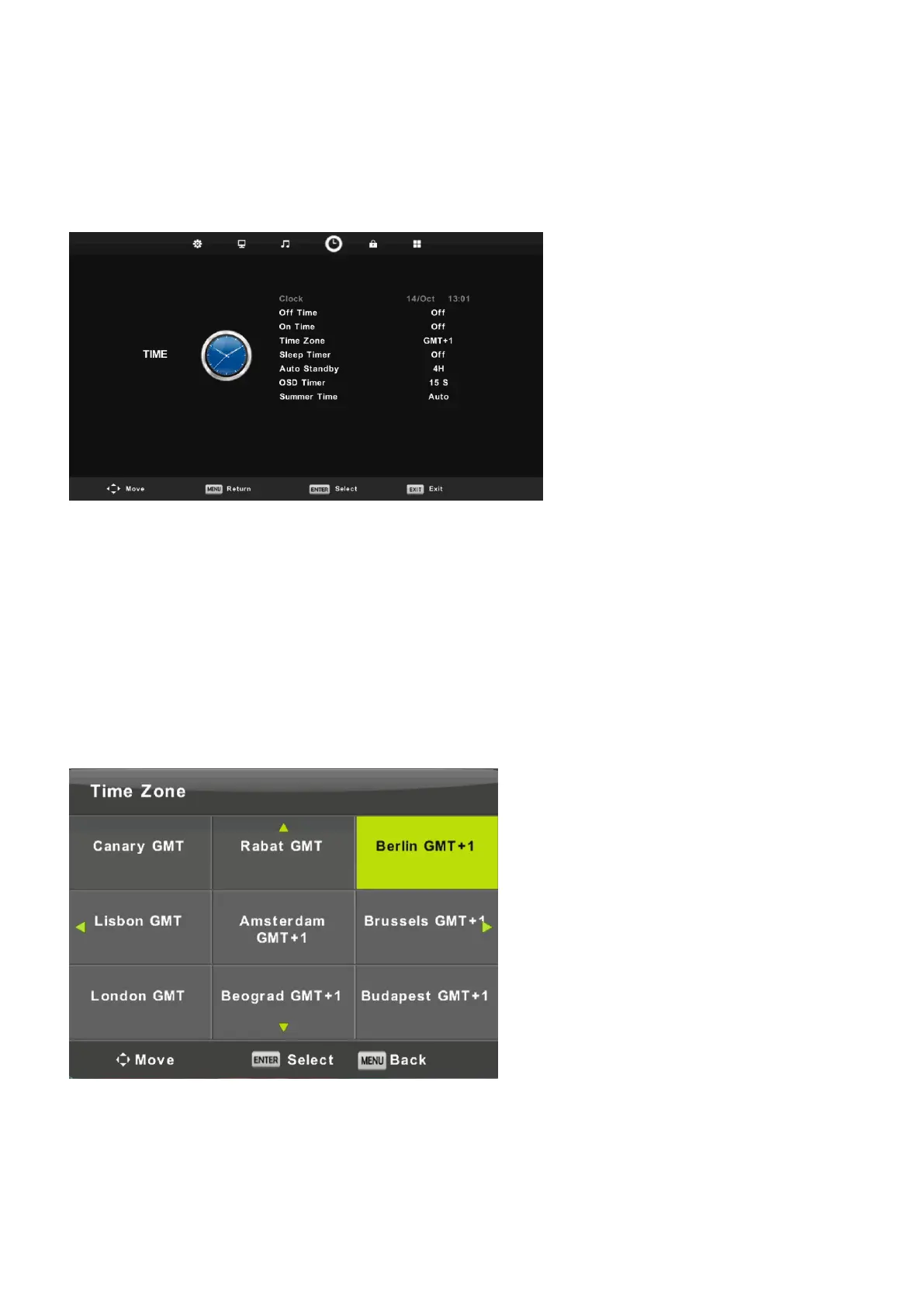 Press ◄ / ► button to select TIME in the main menu.