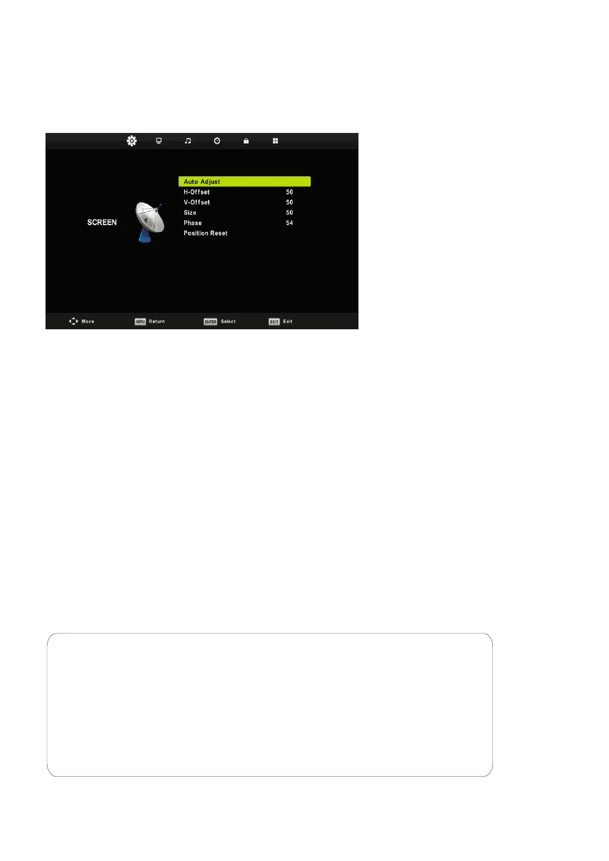 Press Enter button to start adjusting H-Offset/V-Offset/Size/Phase automatically.