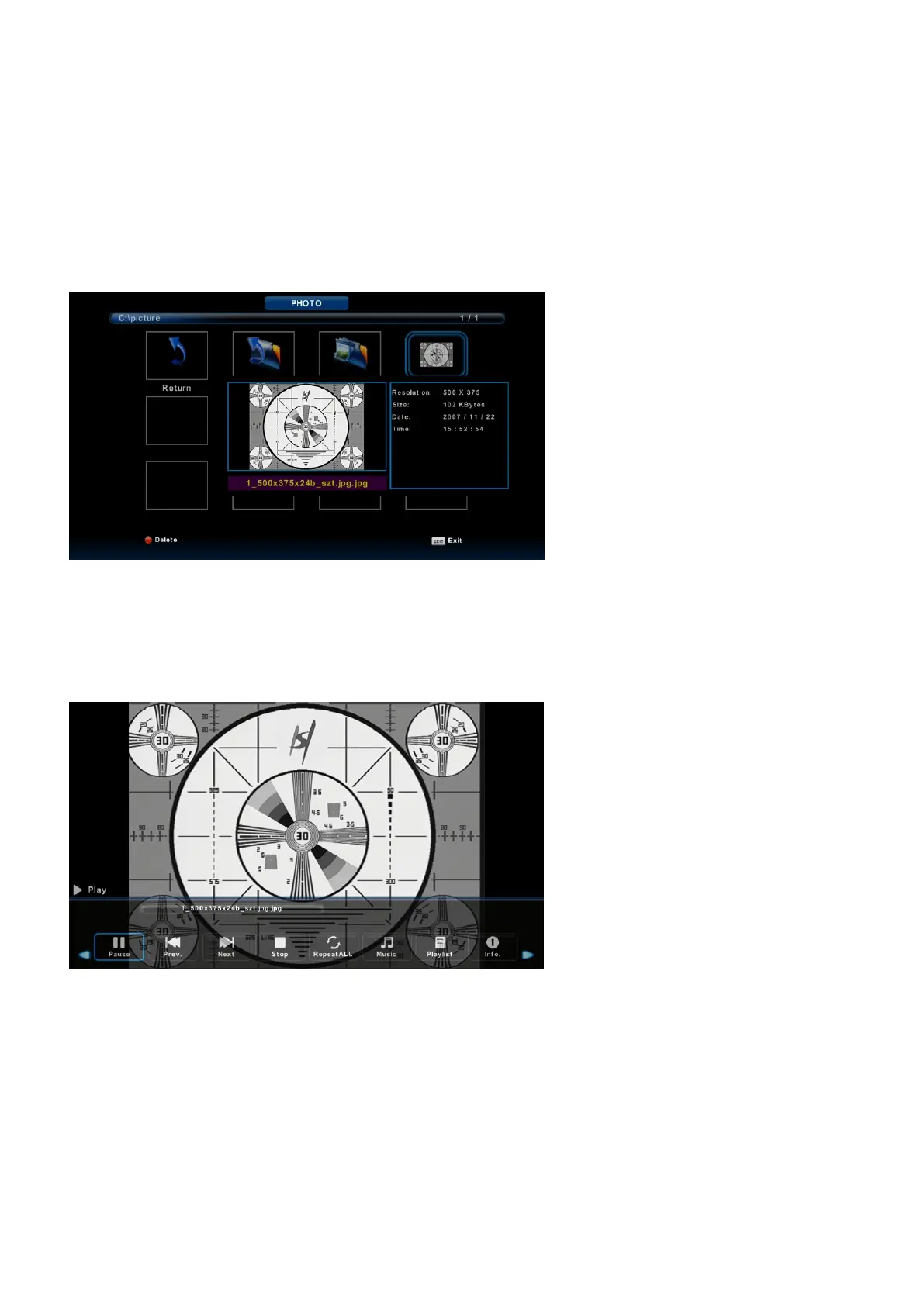 Press ◄ / ► button to select the file you want to watch in the file selecting menu,
