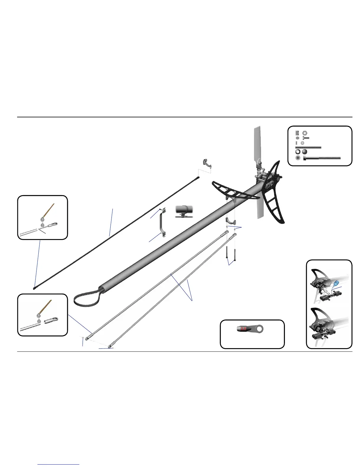 Mikado Logo 600 - 3 Tail Boom; Tail Boom Installation and Ball Links