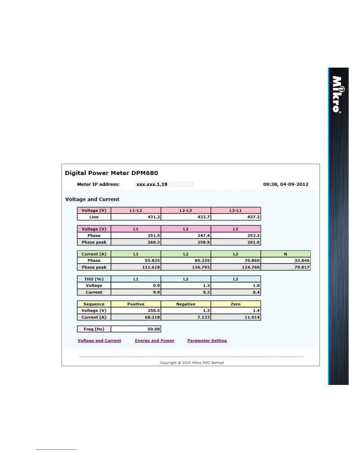Fig 82 : Voltage and Current webpage display