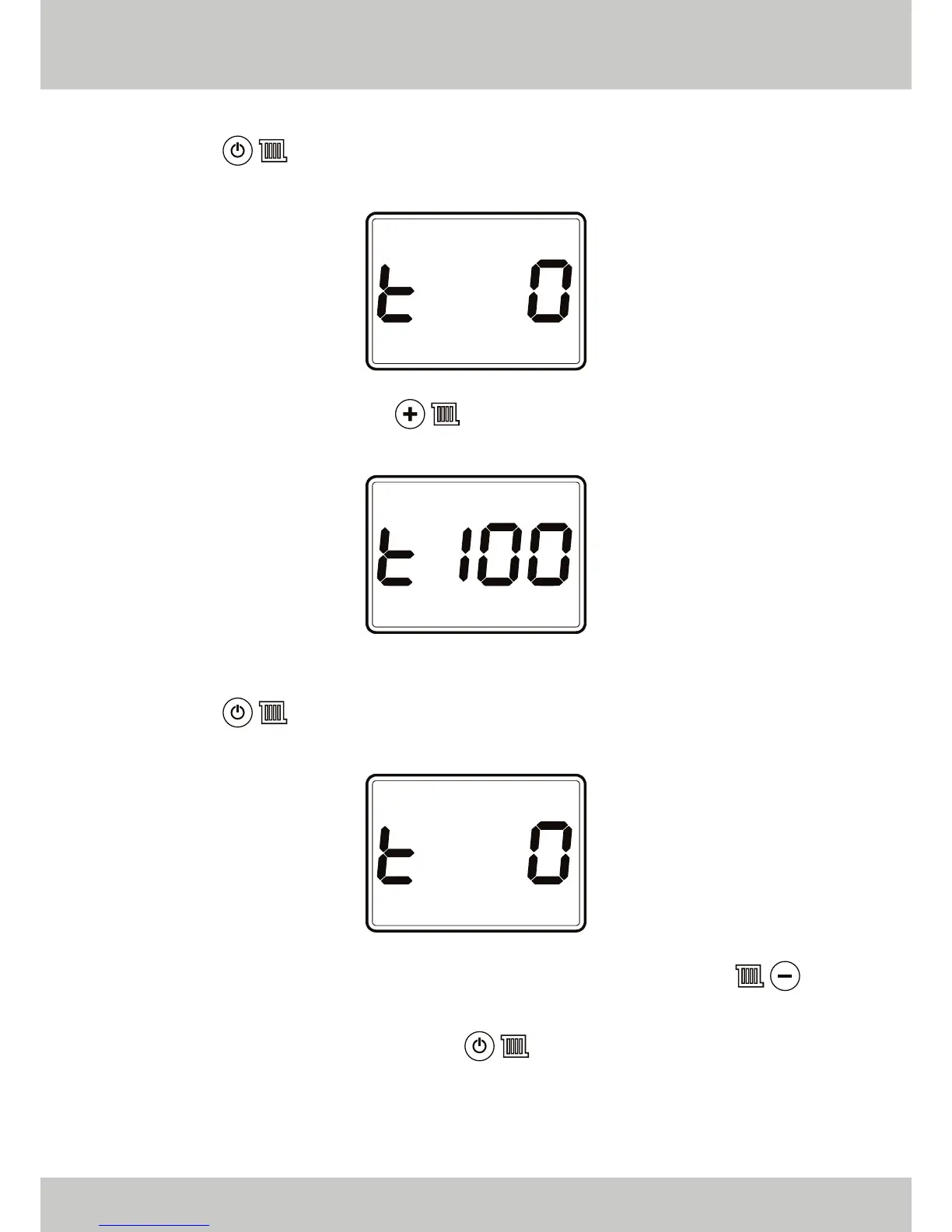 If the boiler is already operating at maximum load (displaying ‘t 100’), then press and hold until the