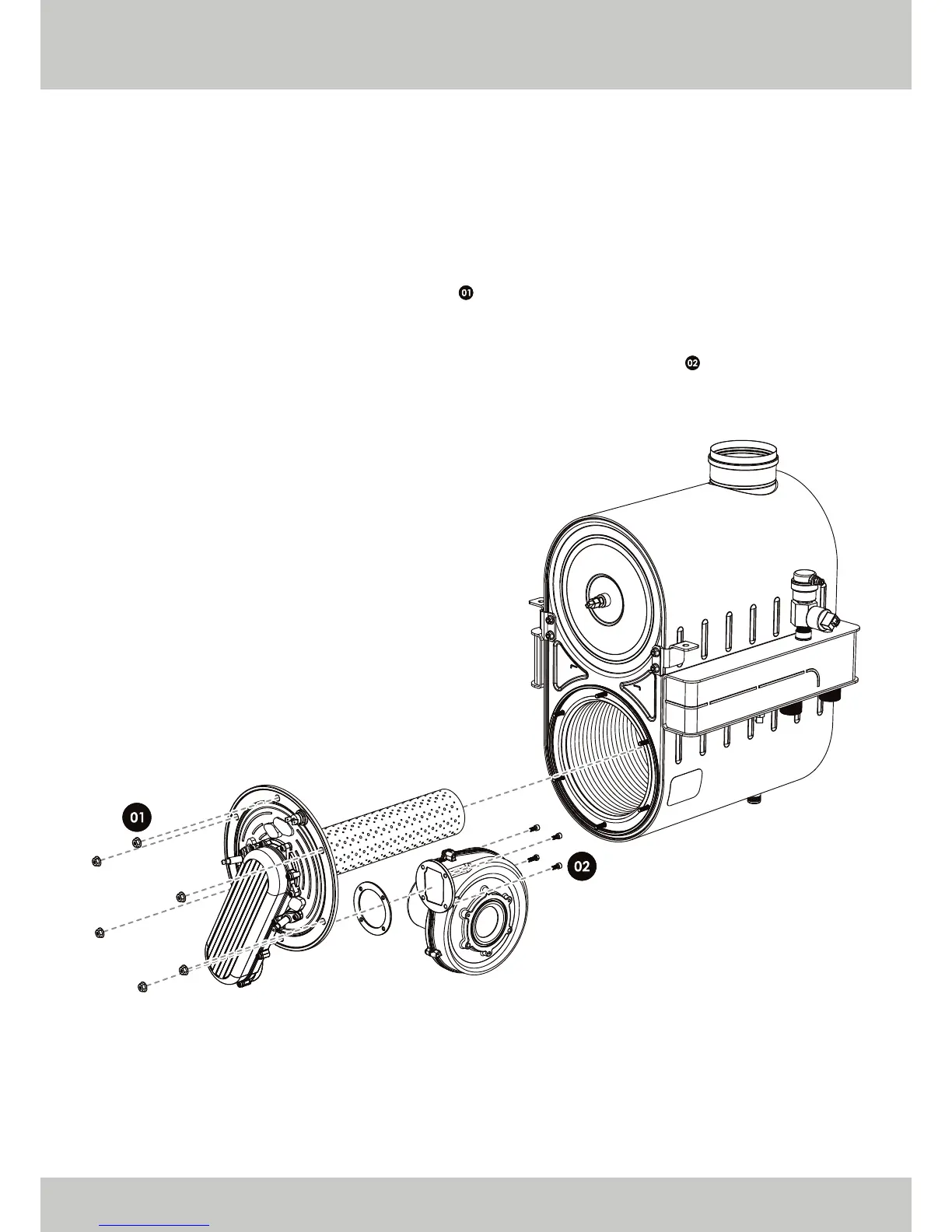 • To separate the fan from the burner, remove the four screws from the fan ( ).