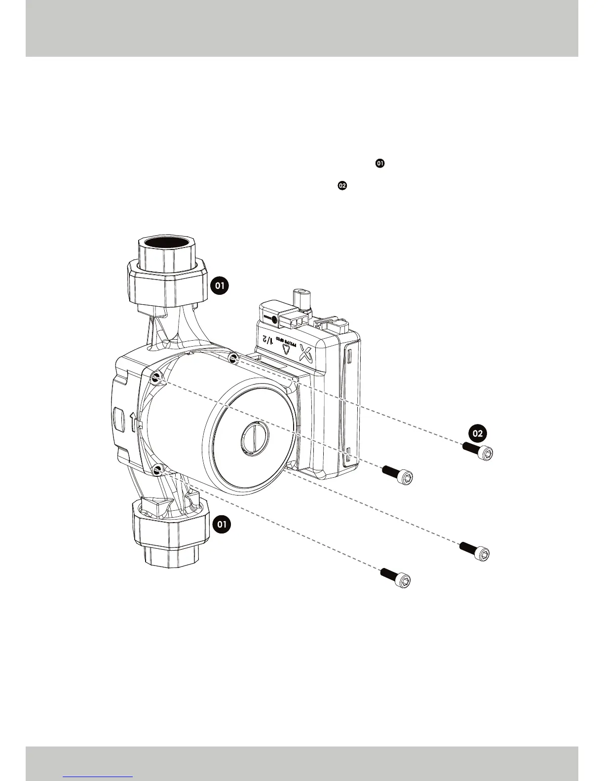 • To completely remove the pump, unscrew the pump unions ( ) and extract the pump.