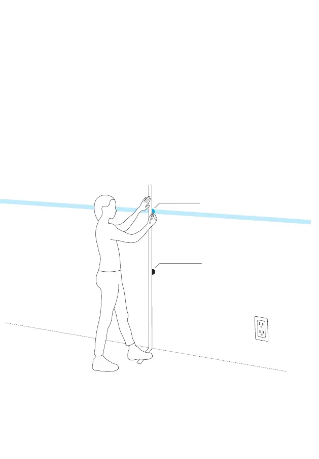 floor and your “Crib Center” mark on the wall. Lift the tape up