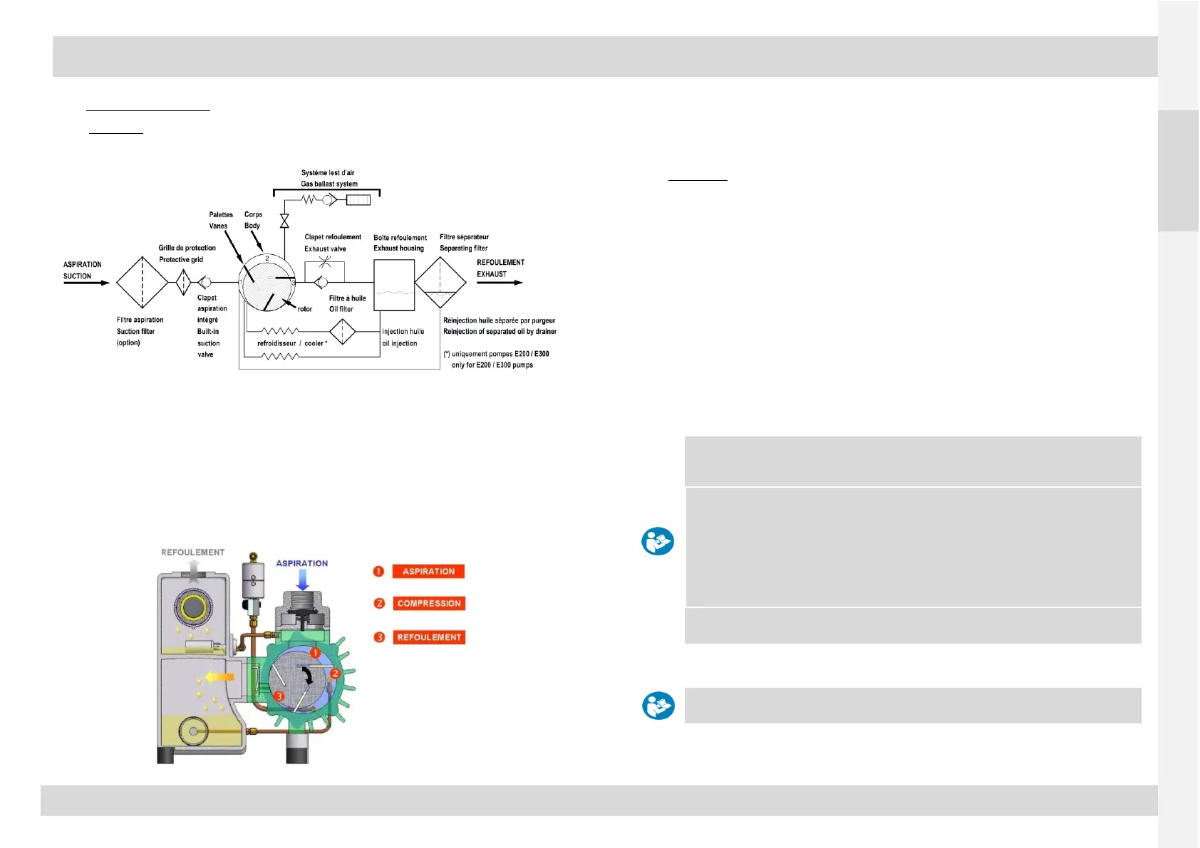 La plage de fonctionnement de ces pompes s'étend de la pression atmosphérique au vide limite de la