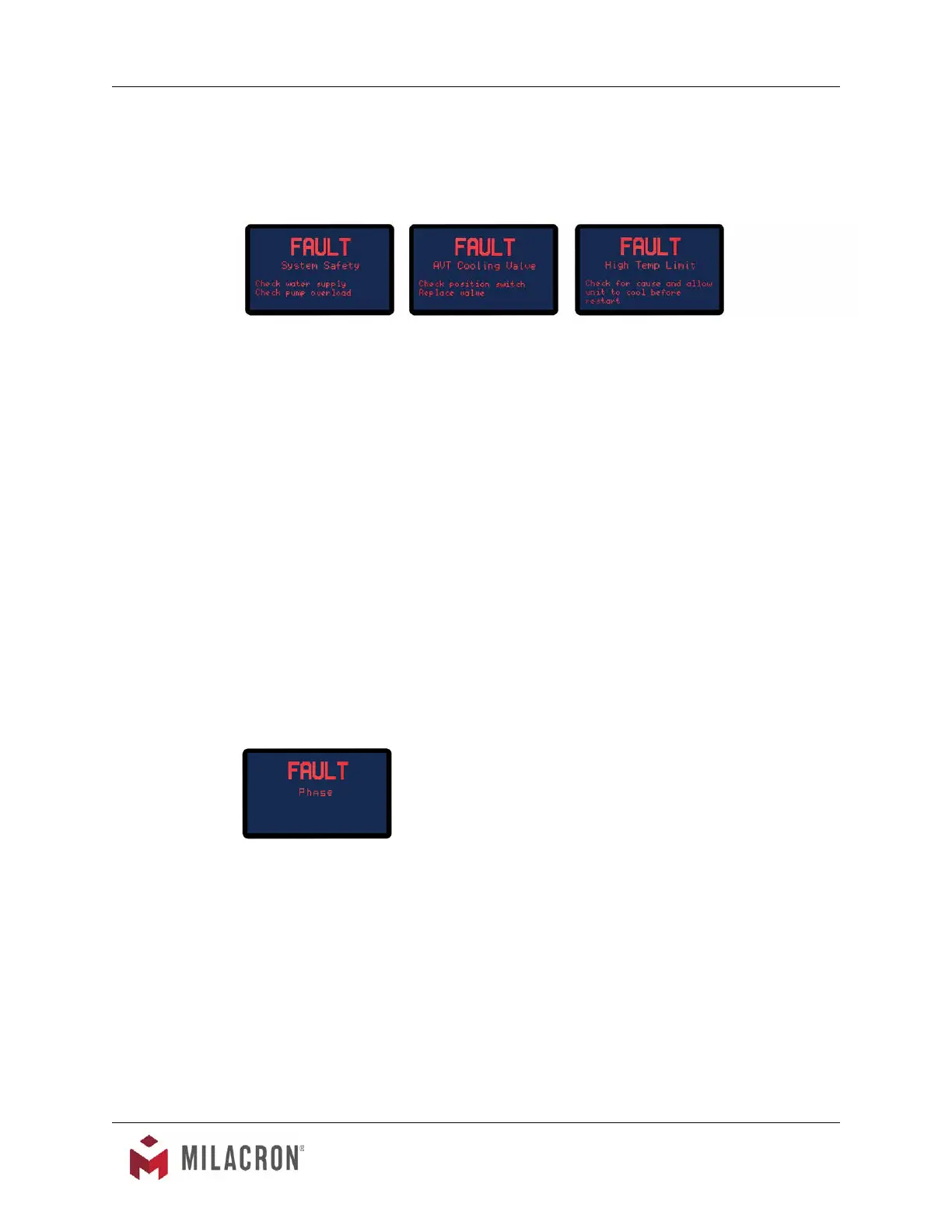 1. Phase. This fault screen appears if the unit is incorrectly phased to the plant