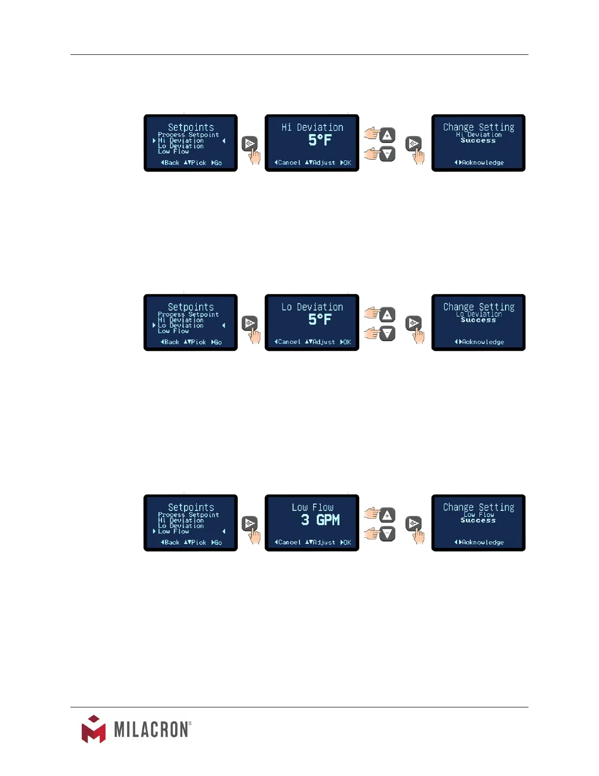 1. The factory default is 10°. The range for the Lo Deviation is from 0°F - 50°F.