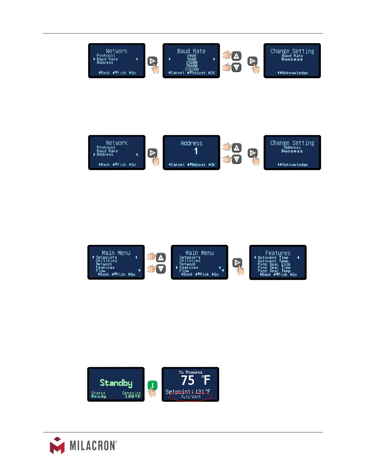 2. Use the Up and Down arrow keys to select the address for this unit. The factory