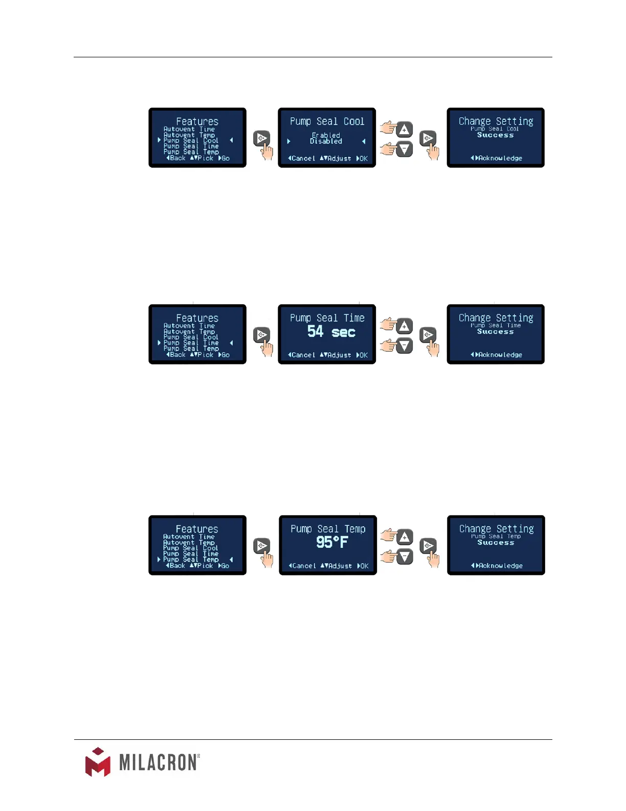 3. Press the Select button to save the Pump Seal Temp and conrm success.