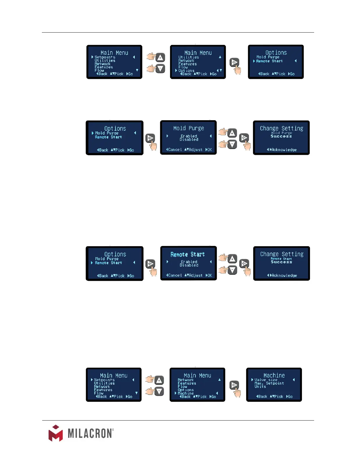 2. Advance to the Mold Purge Enable / Disable screen. Select Enabled to enable