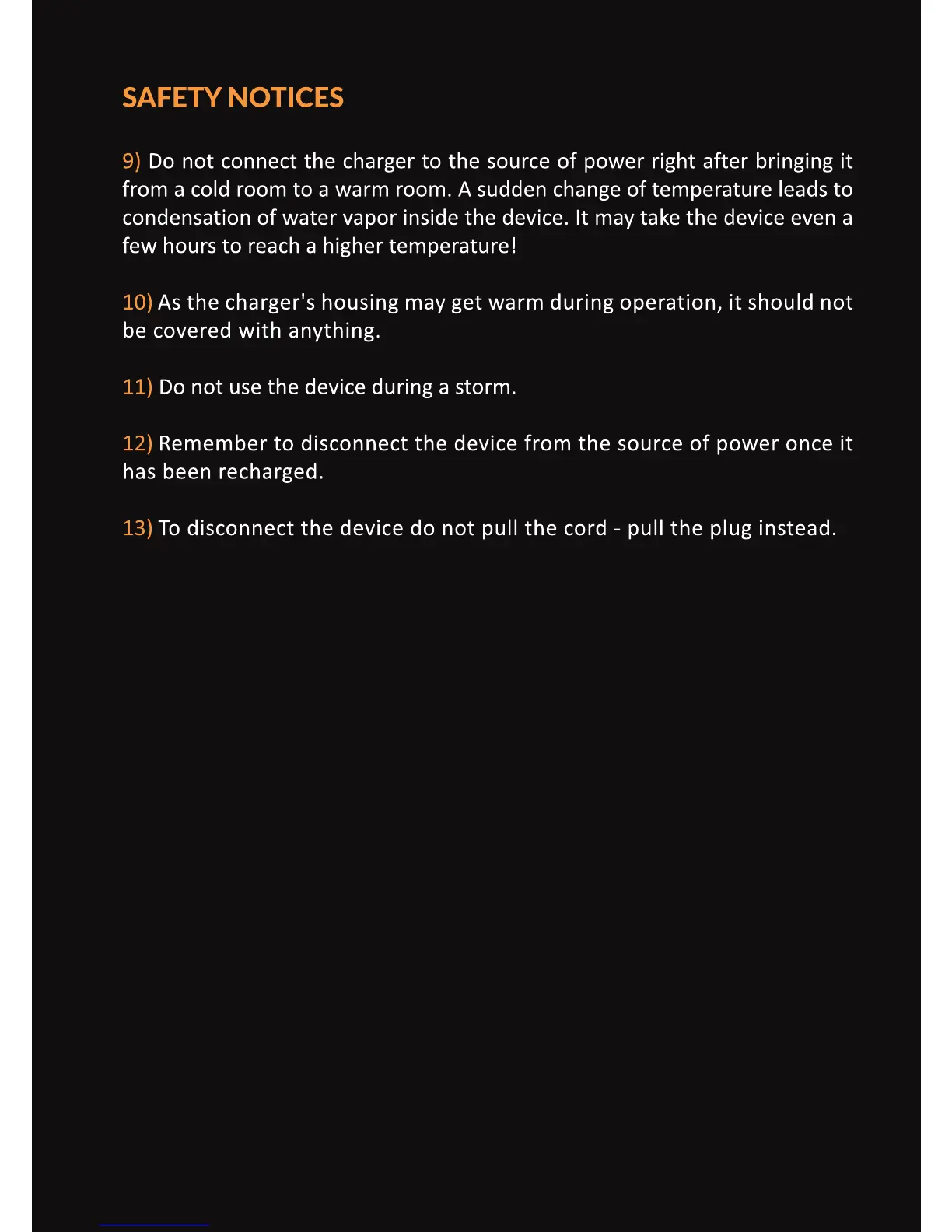 Mild EM - Charger Temperature and Usage Cautions; Storm Usage and Disconnection Safety
