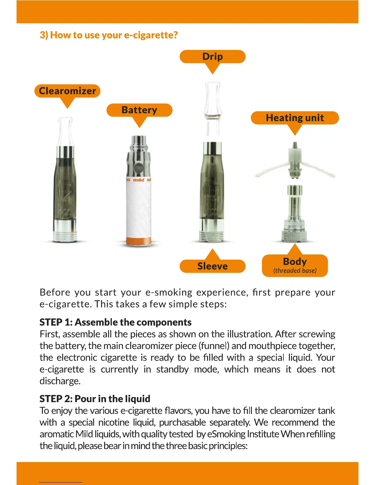 Mild Light - Using Your E-cigarette; Assemble the Components; Pouring the Liquid