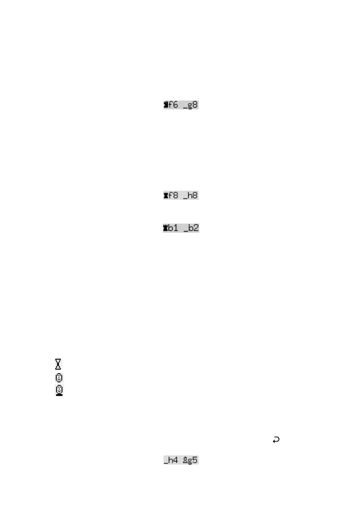 squares alternately. The move is also indicated by a ‘prompt’ in the bottom line of the screen, e.g.: