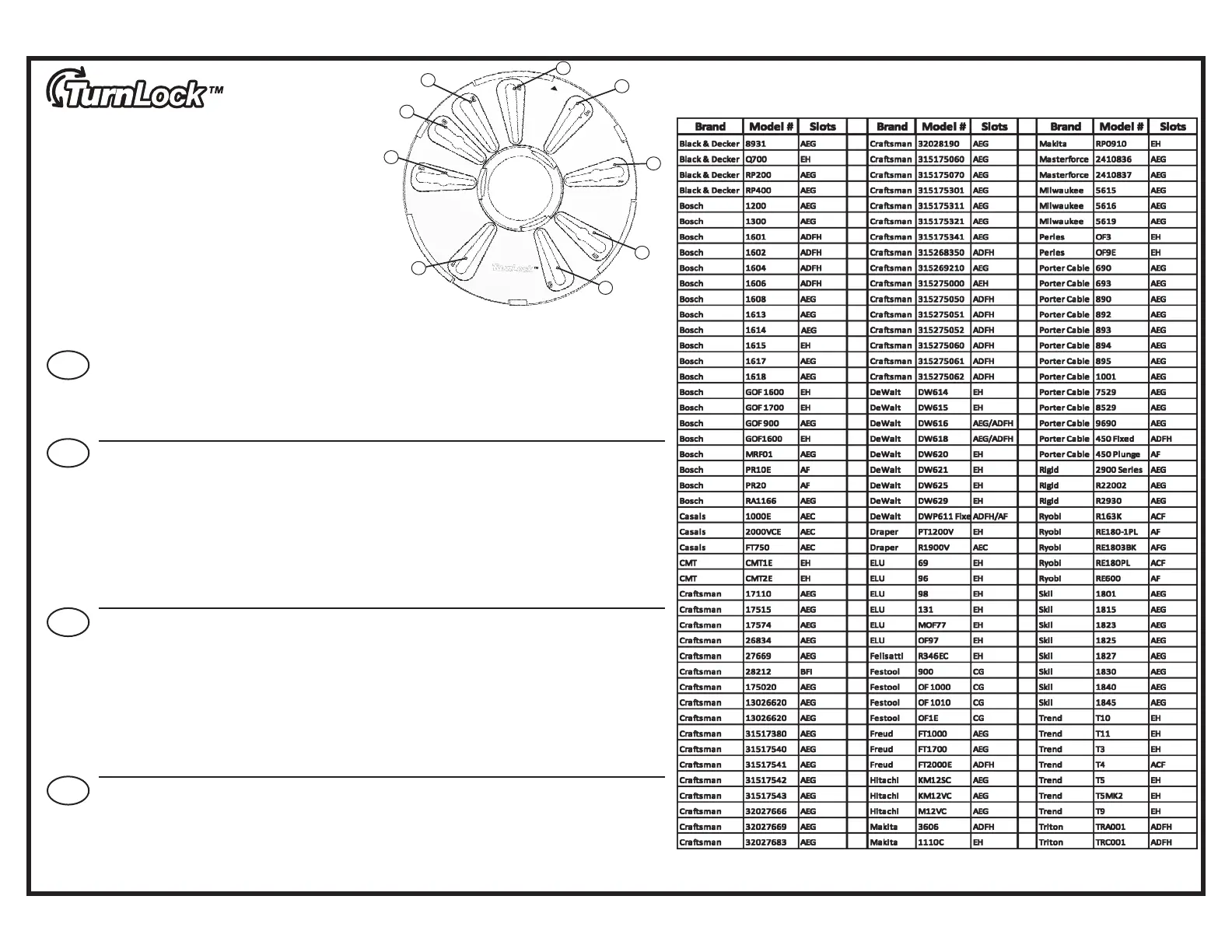 In some instances shown above, NOT ALL holes in router’s base will match the mounting pattern. Only two diagonal holes matched