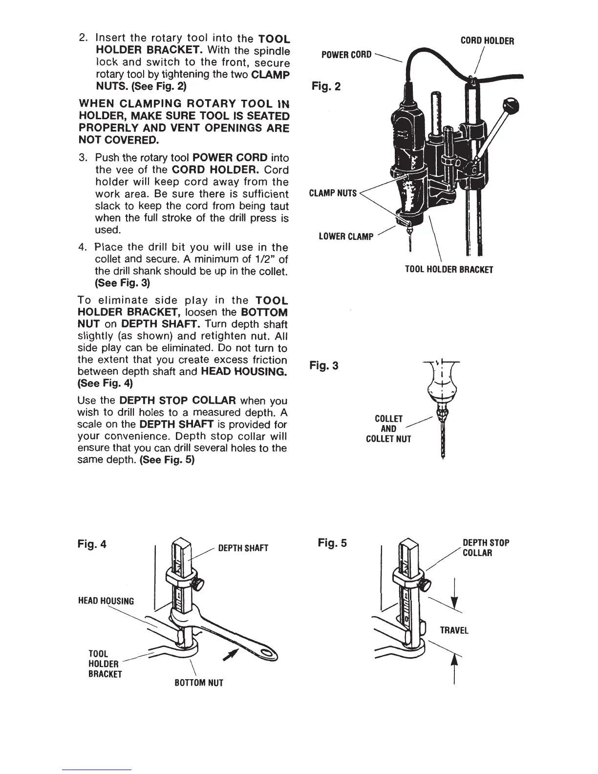 Milescraft ToolStand 1097 - Operation Procedures; Eliminating Side Play; Using the Depth Stop Collar