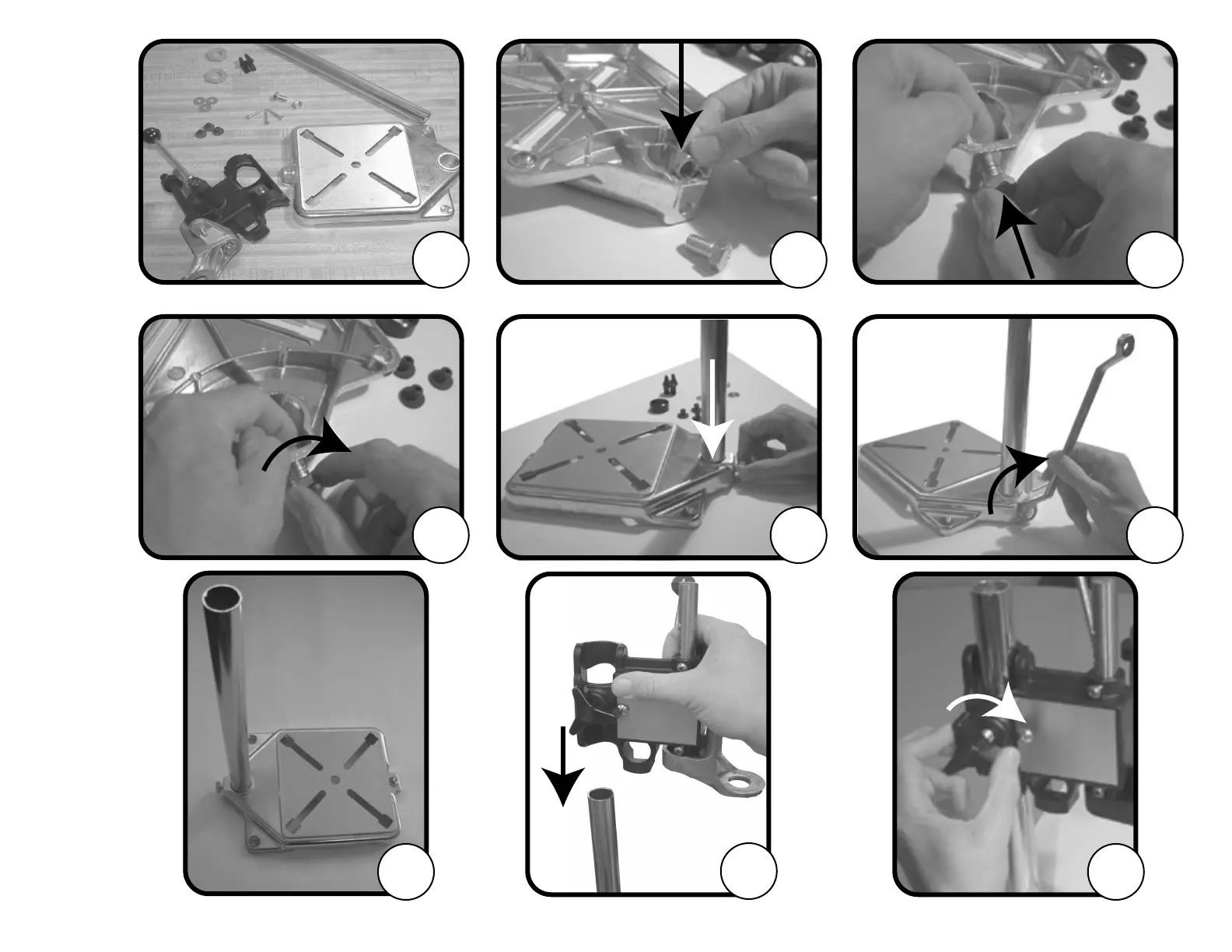 Milescraft ToolStand - Assembly Instructions; Step 1-3: Base Assembly; Step 4-6: Post Attachment; Step 7-9: Column Installation