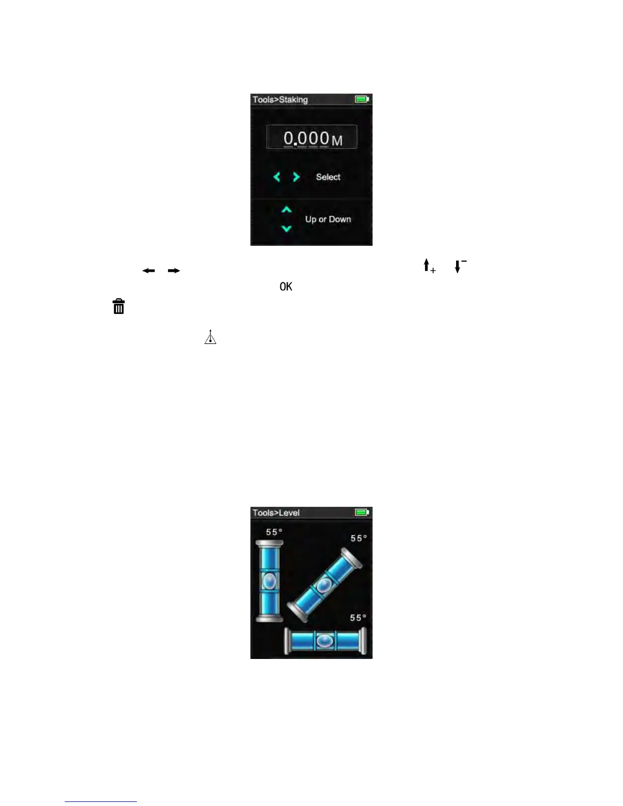 decreases. The instrument starts to beep at a distance of 0.1m from the next stake out