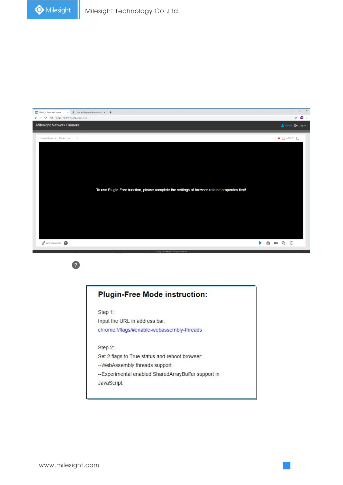 ① You need to upgrade camera to V4x.7.0.70 or above to use Plugin-Free Mode.