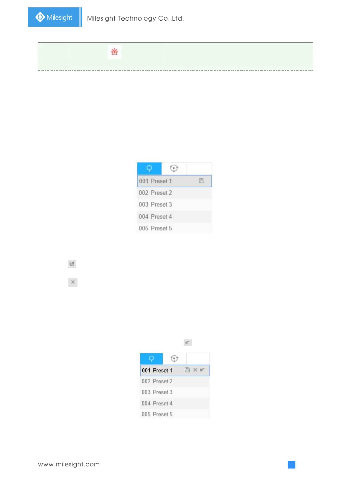 A preset is a predefined image position. You can click the call button from the preset list to quickly