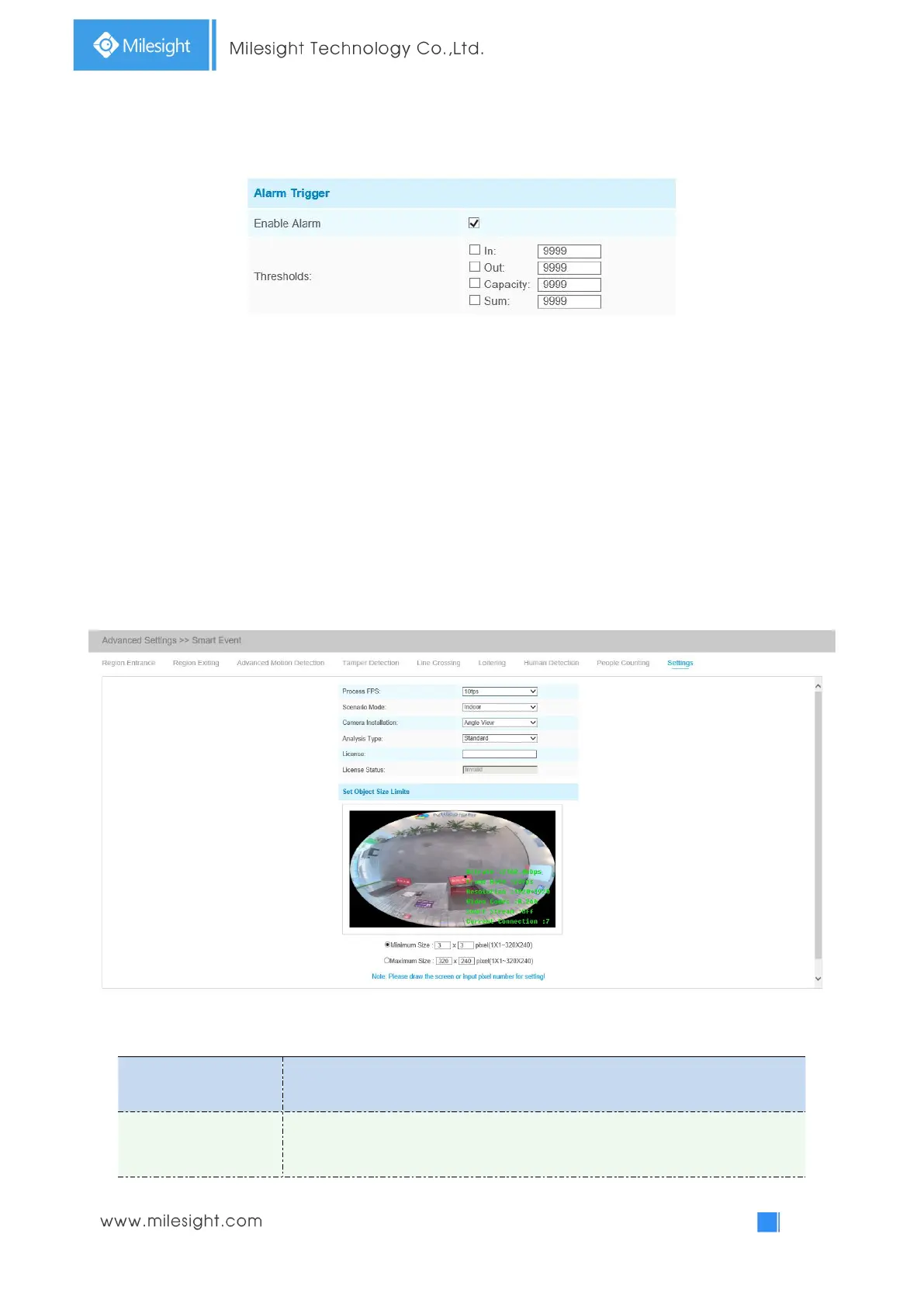 Milesight VCA provides the primary setting for the whole VCA functions. “Minimum Size” is to set