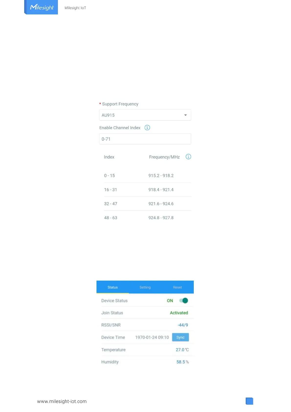 If frequency is one of CN470/AU915/US915, you can enter the index of the channel that you