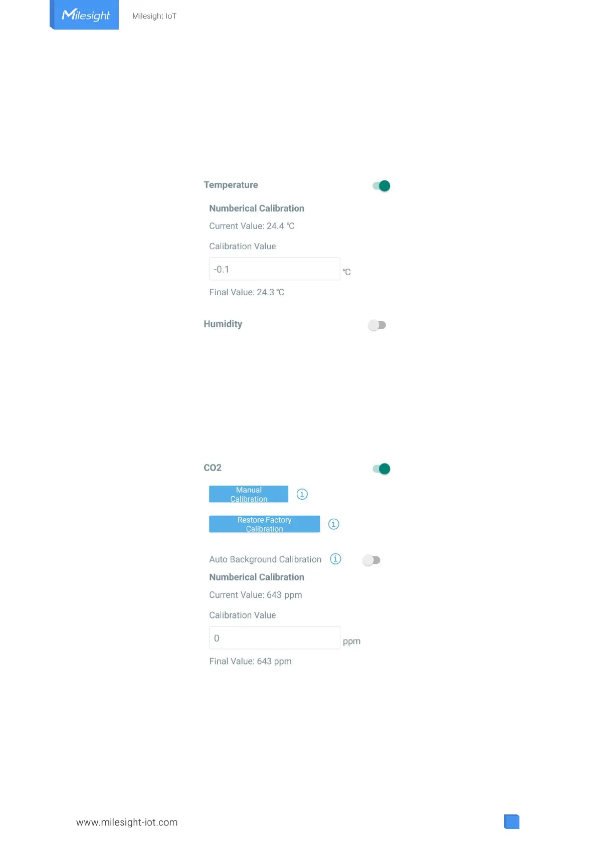 Settings” of ToolBox App to type the calibration value and save, the device will add the