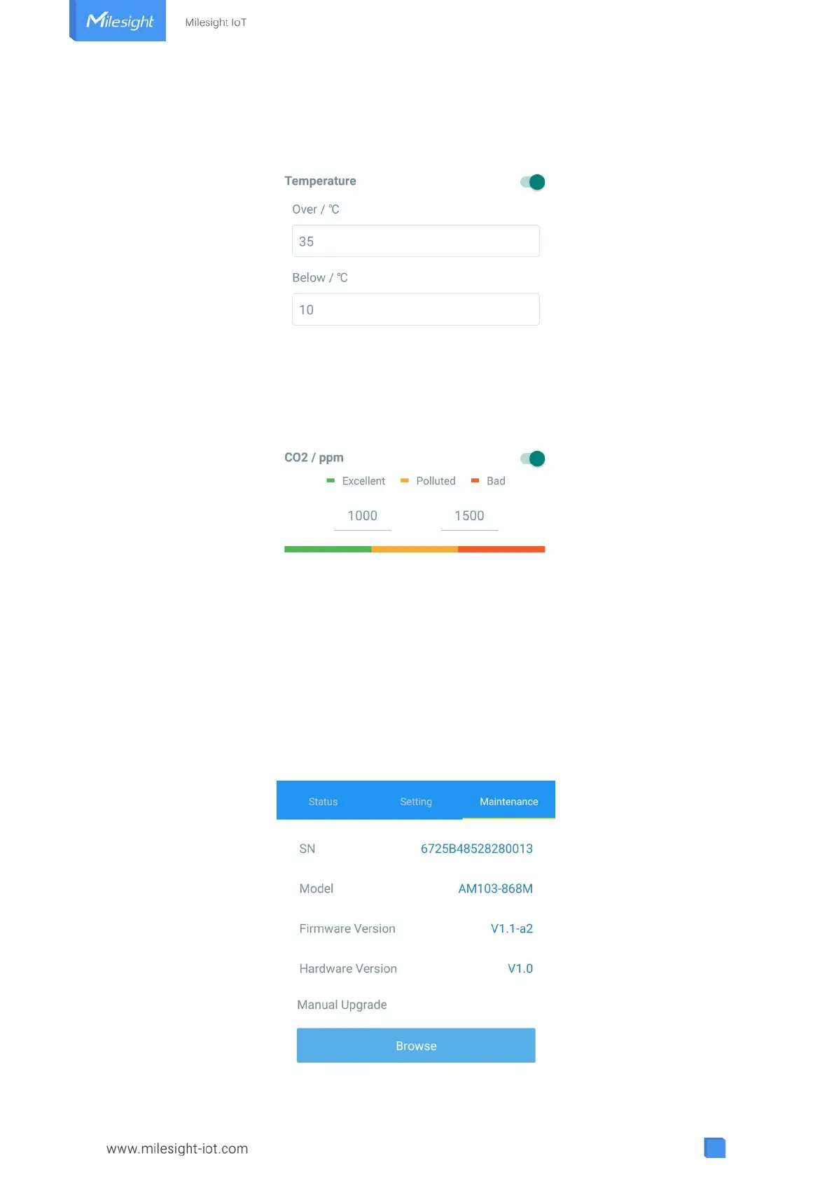 screen alarms. Besides, when it exceeds the Bad threshold, AM103/AM103L will upload the