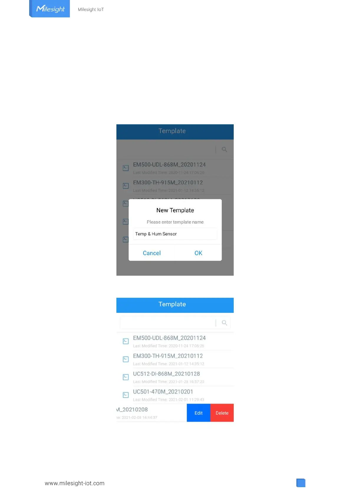 1. Go to “Template” page on the App and save current settings as a template. You can also edit