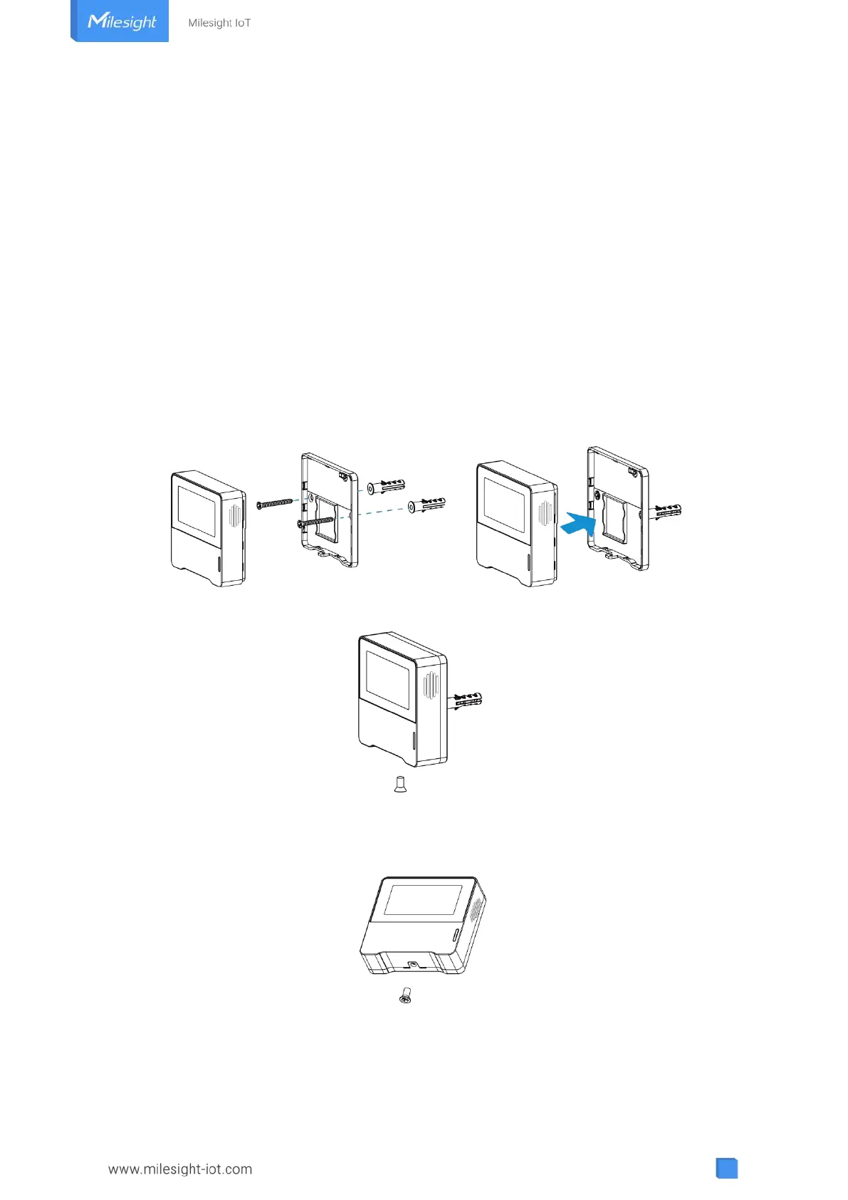 1. Remove the rear cover of the device, screw the wall plugs into the wall and fix the rear cover with