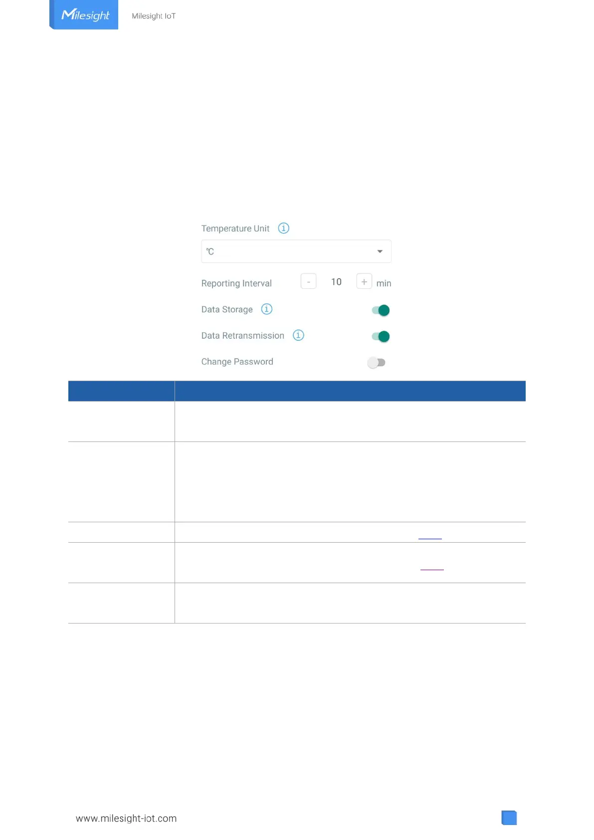 1) The temperature unit in the reporting package is fixed as °C.