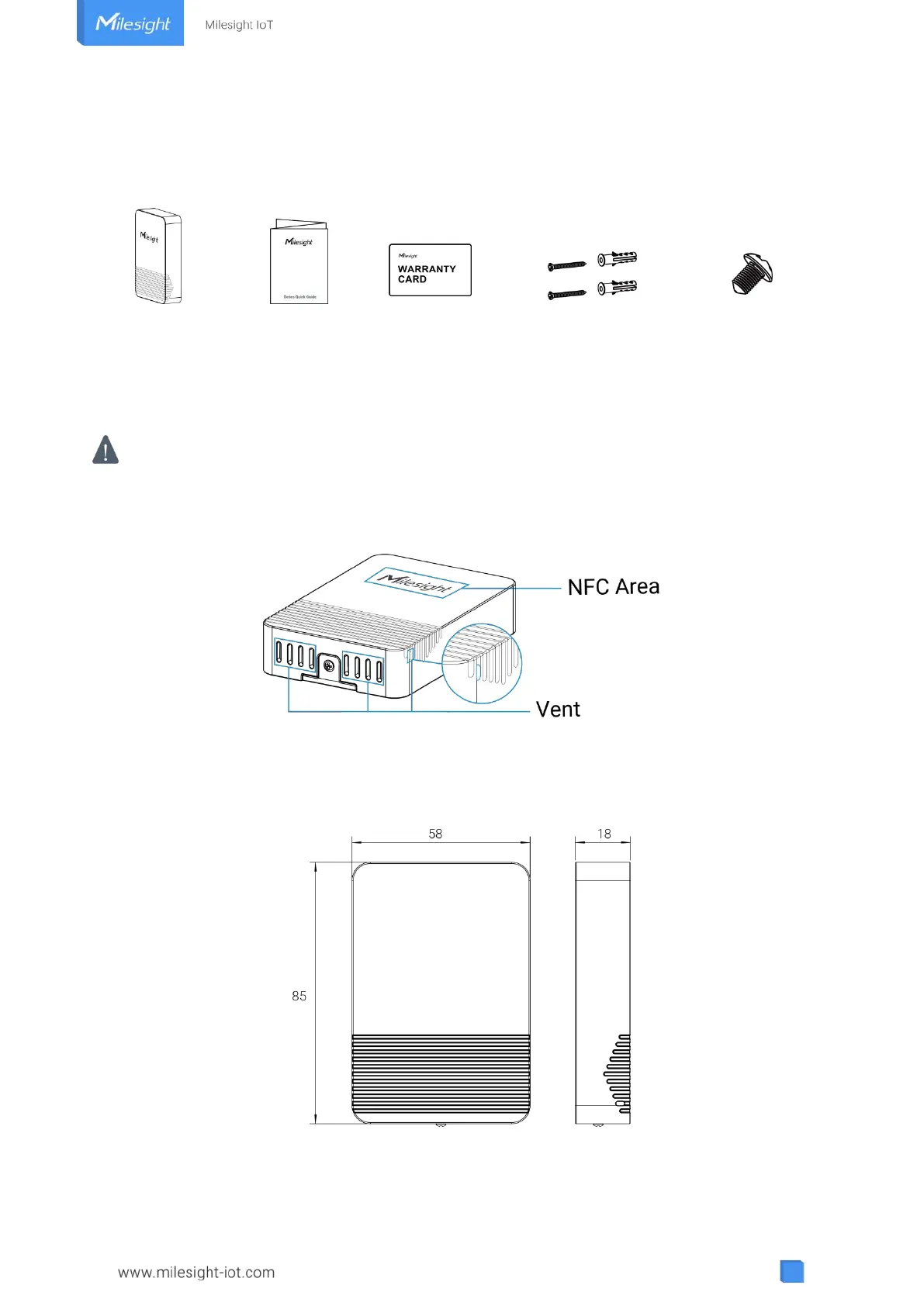 Milesight LoRaWAN EM320-TH - Hardware Introduction; Packing List; Hardware Overview; Dimensions