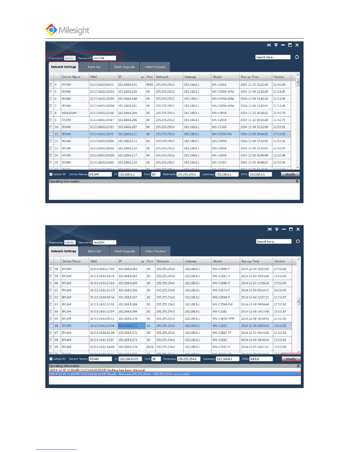 Step 5: Change the IP address or other network values, and then click “Modify button.