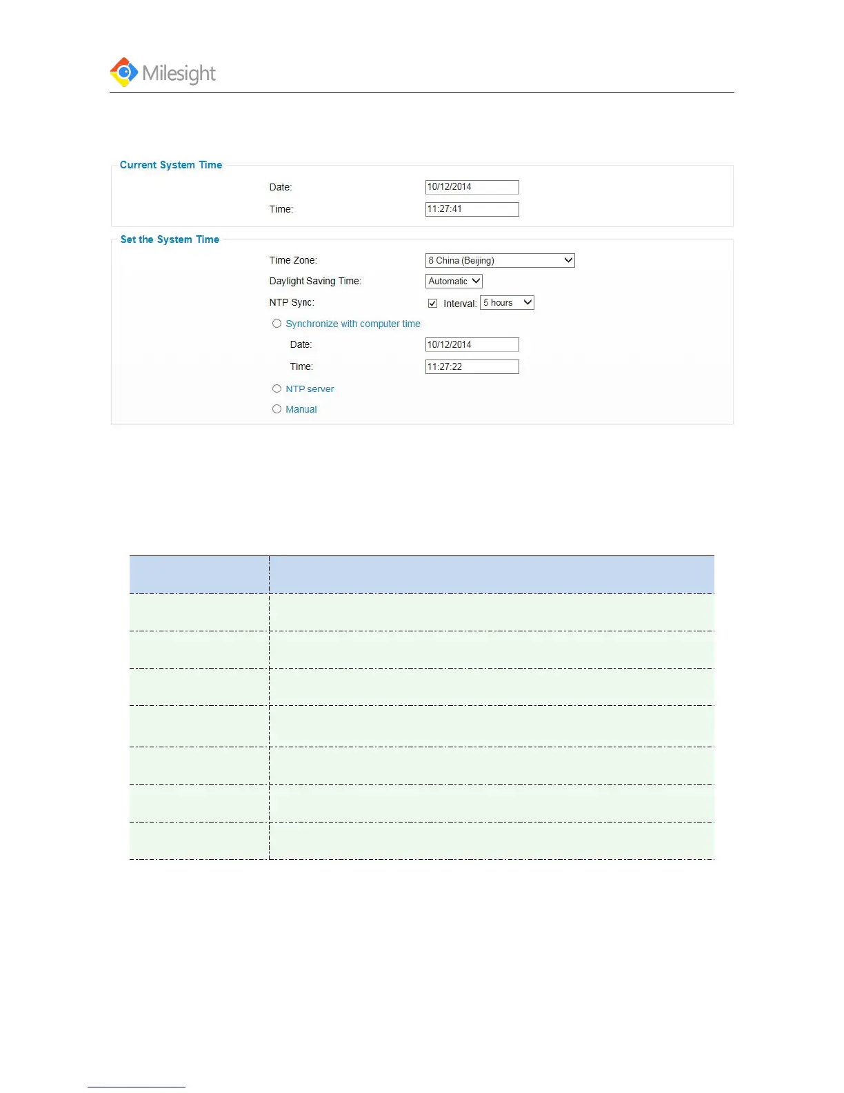 Encryption Type Synchronize the time with configured SNTP server and selected time zone