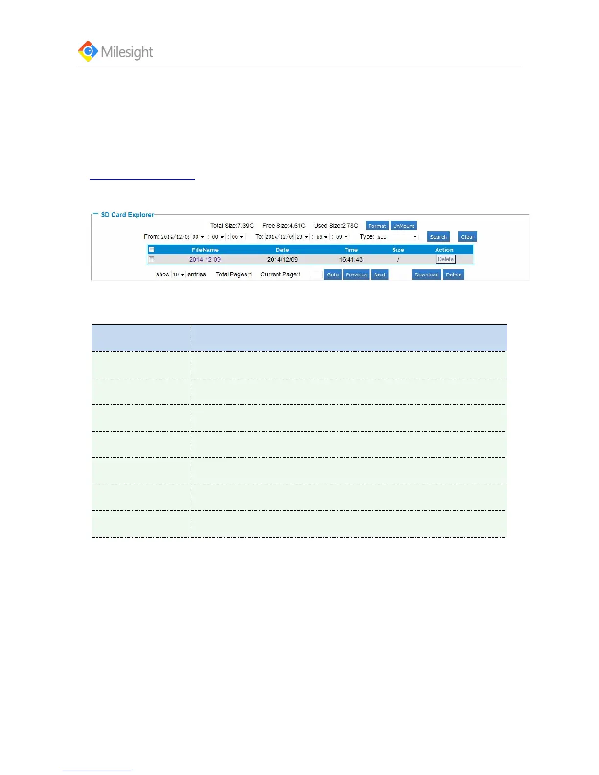 Files will be seen on this page when they are configured to save onto SD card. You can configure