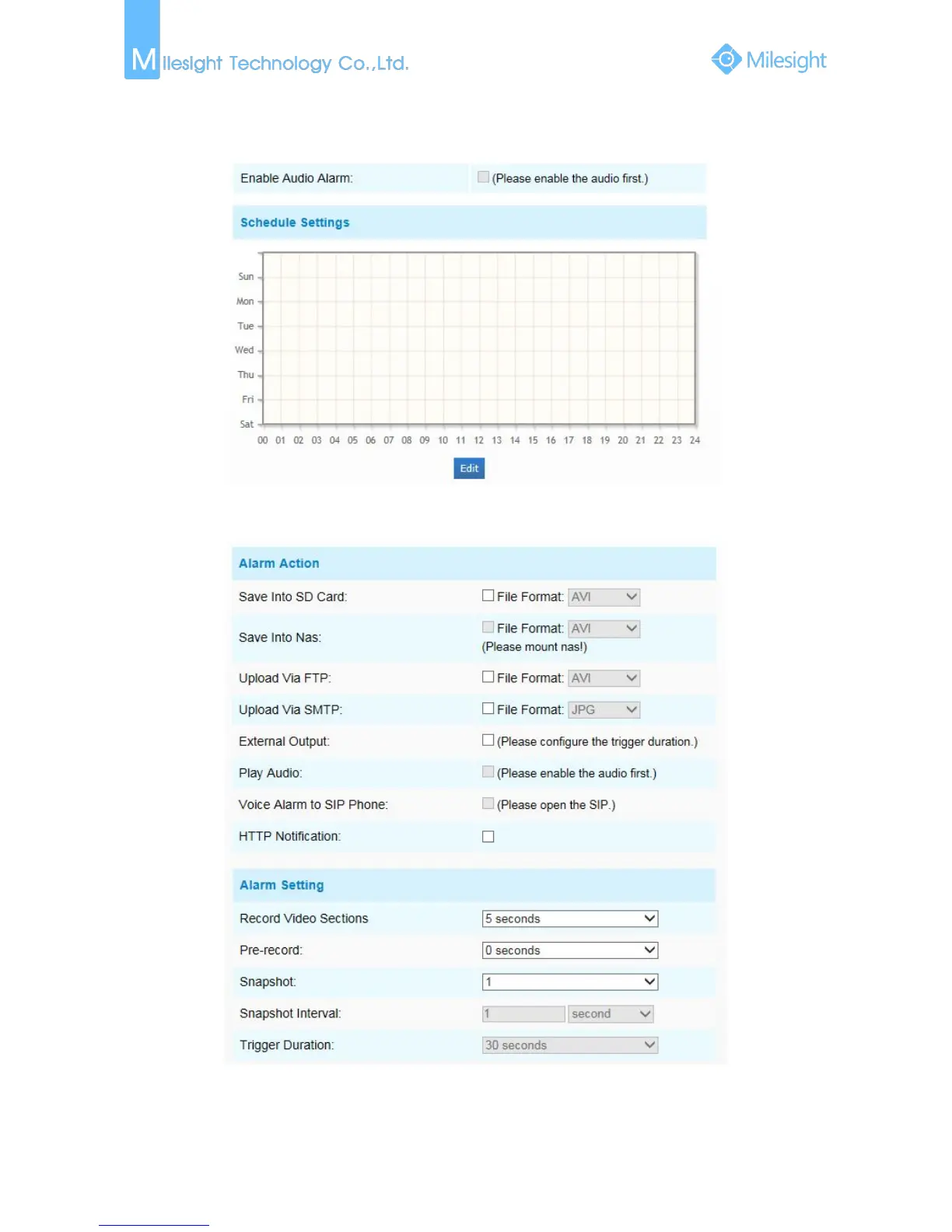 Figure 4-4-14 Schedule Settings of Audio Alarm