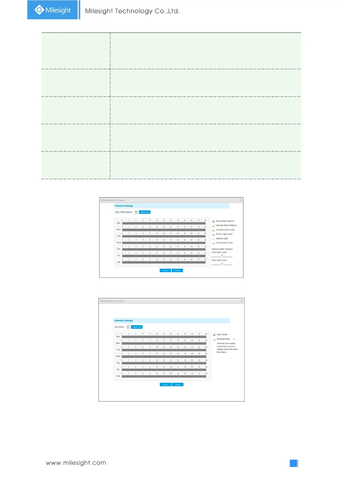 1) You can customize the schedule to enable/disable the difference White Balance modes.