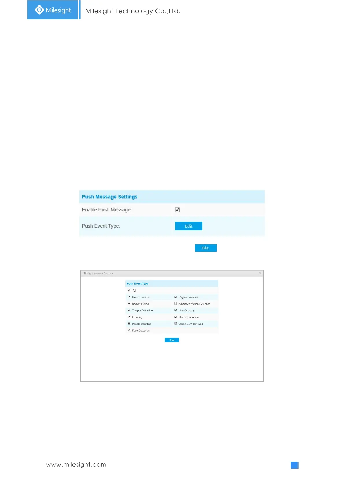 When enabling the Push Message function, you can click to choose the types of Events’