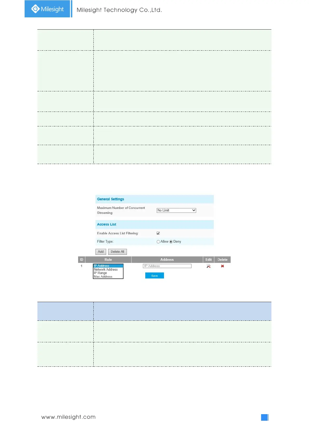 Allow or Deny, set the rule to IP Address, Network Address, IP Range or MAC