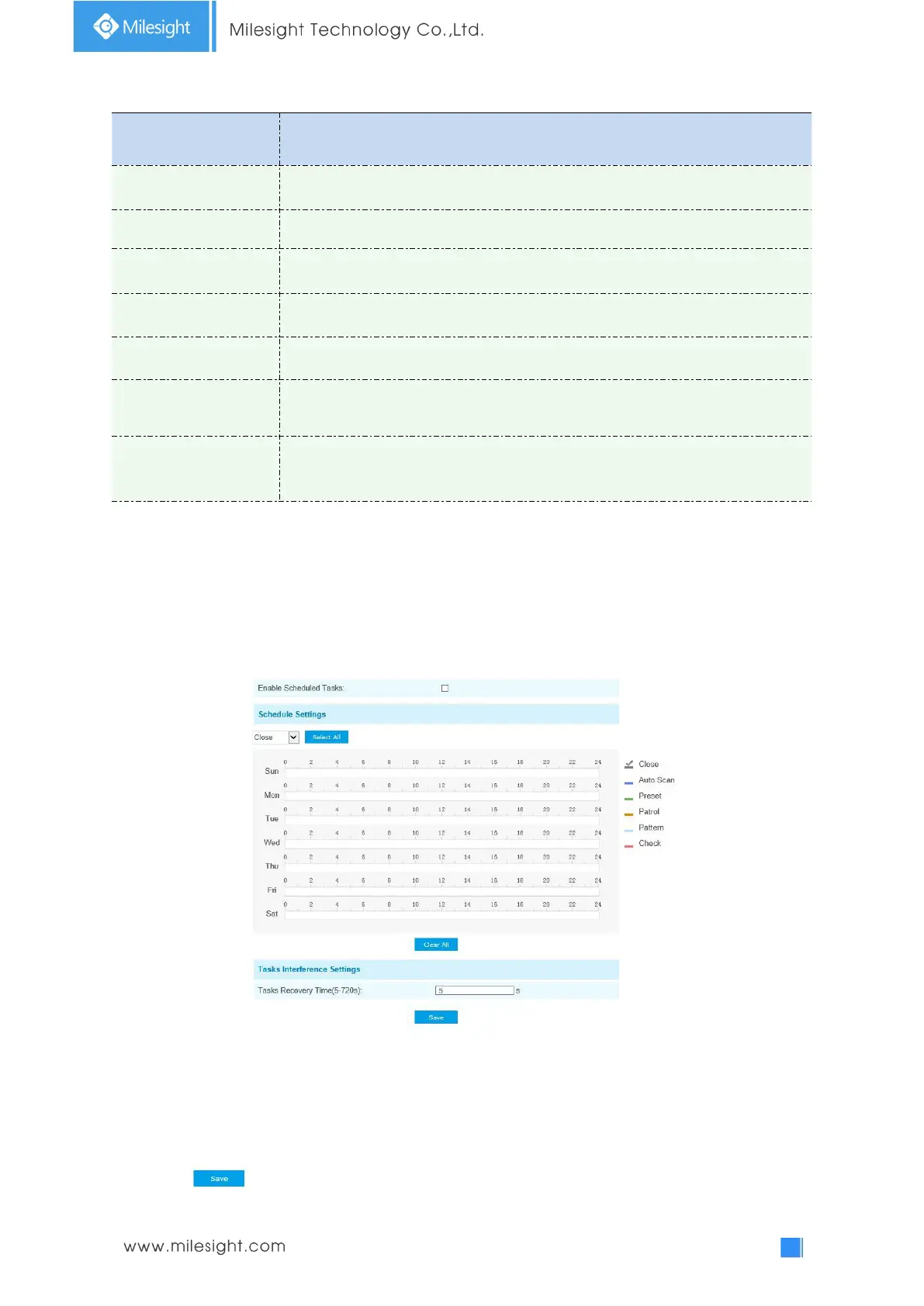 You can configure the PTZ camera to perform a certain action automatically in a user-defined time
