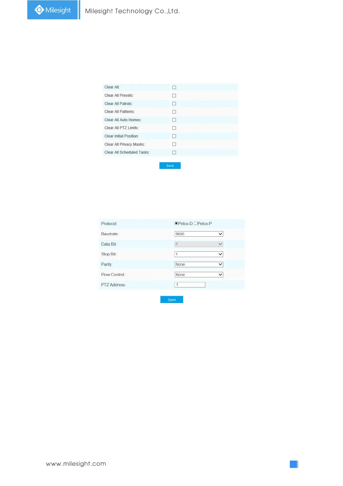 Baudrate, Data Bit, Stop Bit, Parity, Flow Control, PTZ Address should be exactly the same as those