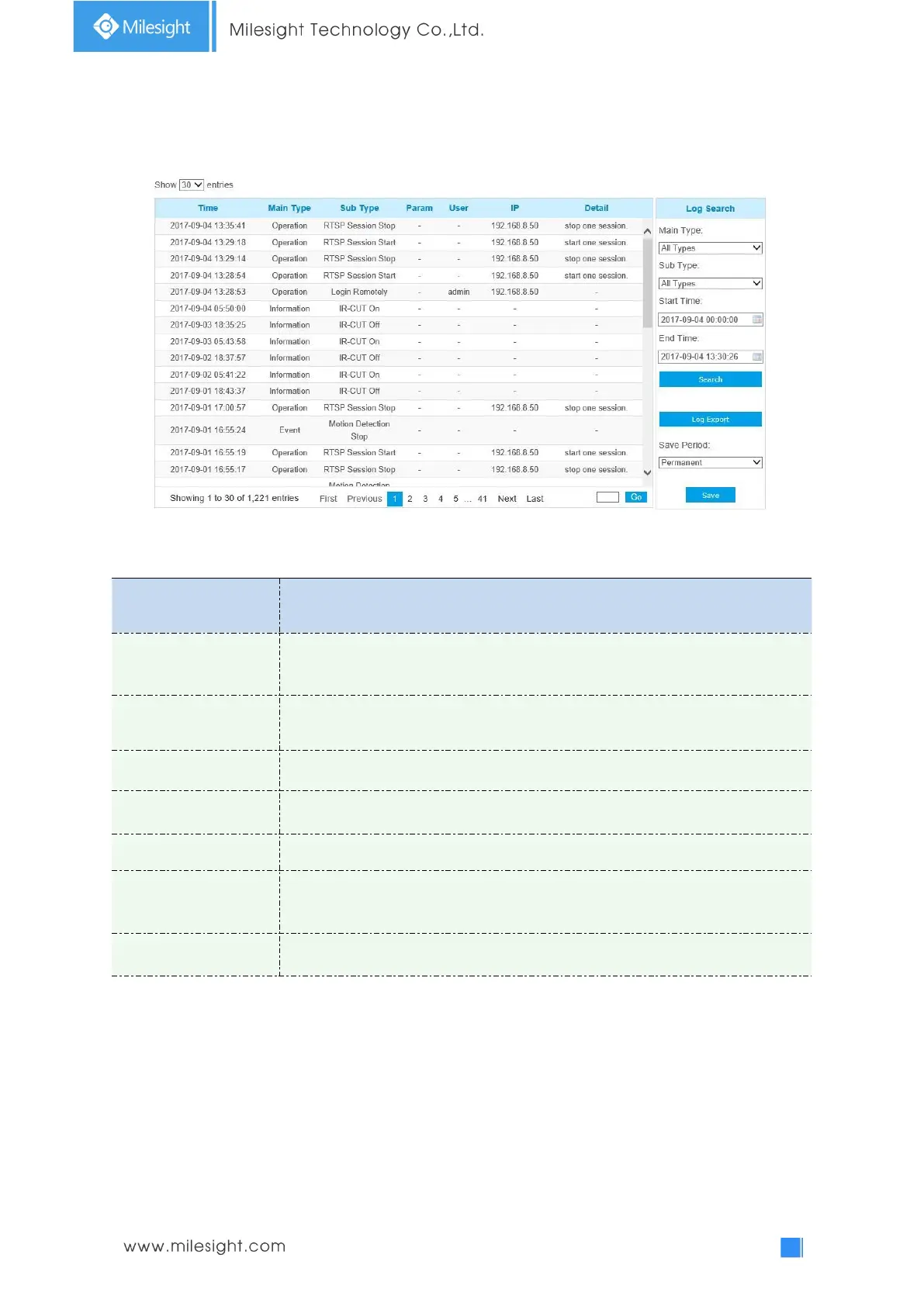 The logs contain the information about the time and IP that has accessed the camera through web.