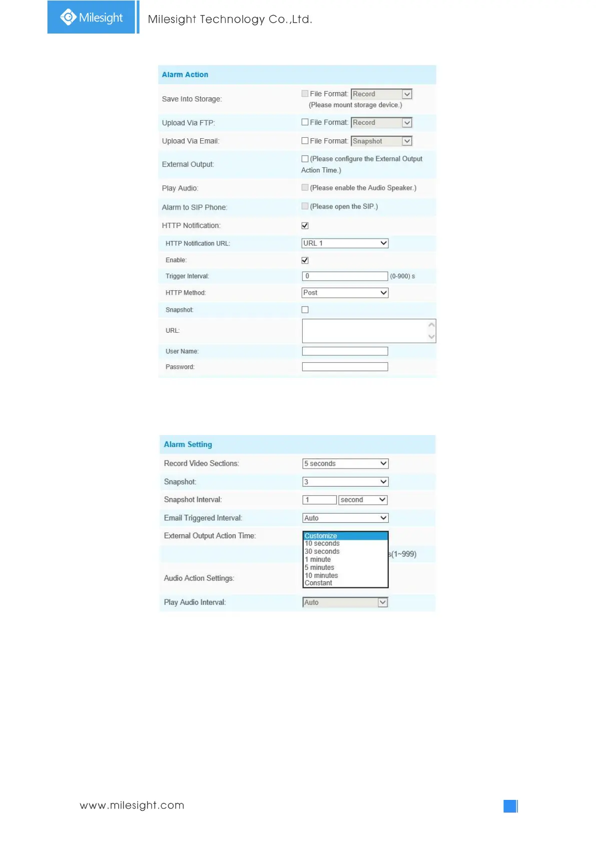 Step4: Set alarm settings. If you enable External Output and choose Constant External Output